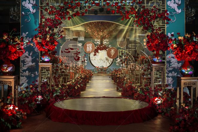 中国风婚礼是我国传统文化的精髓,大红花轿、凤冠霞帔、拜天地、掀盖头……每一个道具,每一道流程,都折射出一种久违的文化气息。中式婚礼是汉传统文化的精粹之一,在历史的长河中绽放着夺目的风采,它是一种继承,更是一种发展。婚姻可以等待,婚礼同样不可以儿戏。在日益重视文化发展的中国,在更加追求个性创意的新一代,"追寻文化根源、重视传统民俗"成了现代人的新“时尚”。